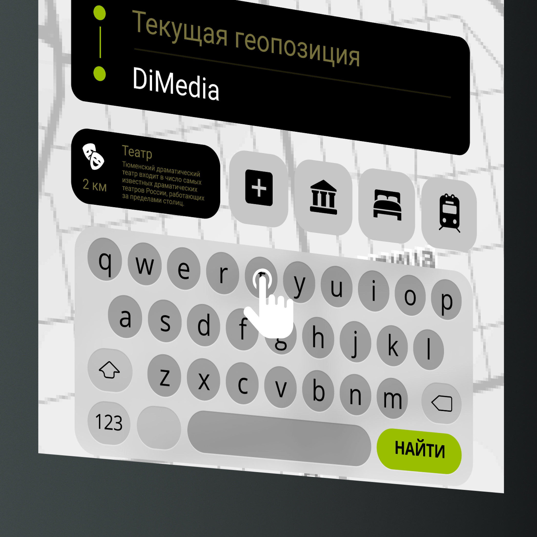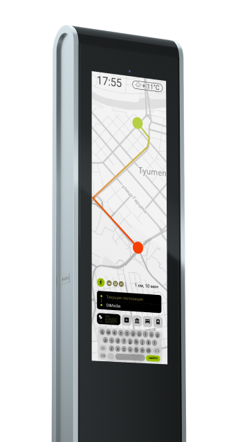 Конструкция оснащается мультитач-экранами. Может совмещать в себе функции рекламоносителя, городского информационного стенда и навигационной системы.